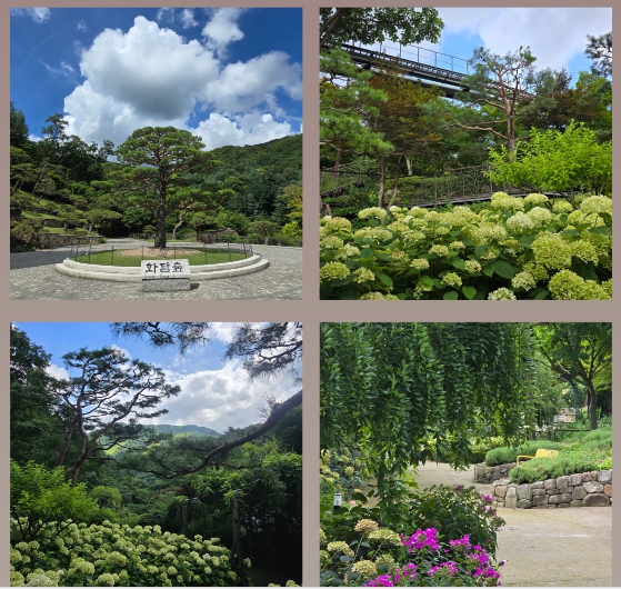 - 모노레일 정상 이동 → 메타세쿼이아 길 → 단풍 숲 → 연못 정원 → 소나무 정원