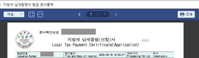 - 즉시 발급 → 출력 또는 파일 저장